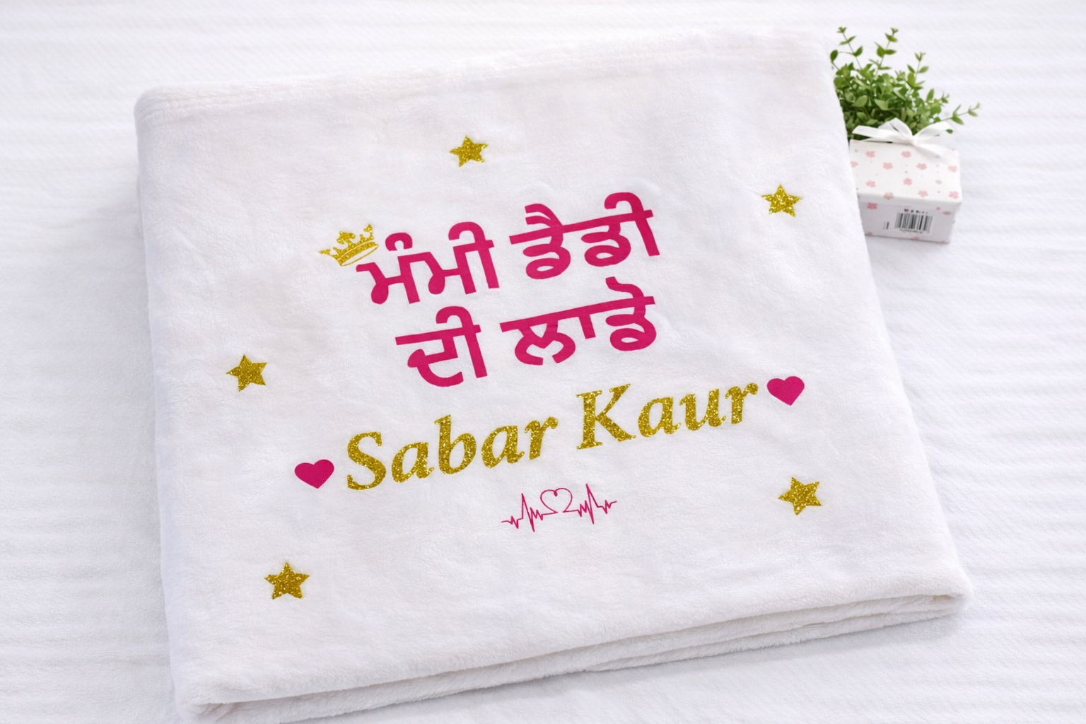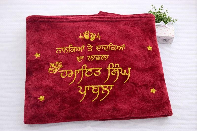 Each blanket features high-quality embroidery with elegant details such as crowns, stars, hearts, symbols, or cultural lettering, making it perfect for newborn photos, baby announcements, keepsakes, and gifting.
